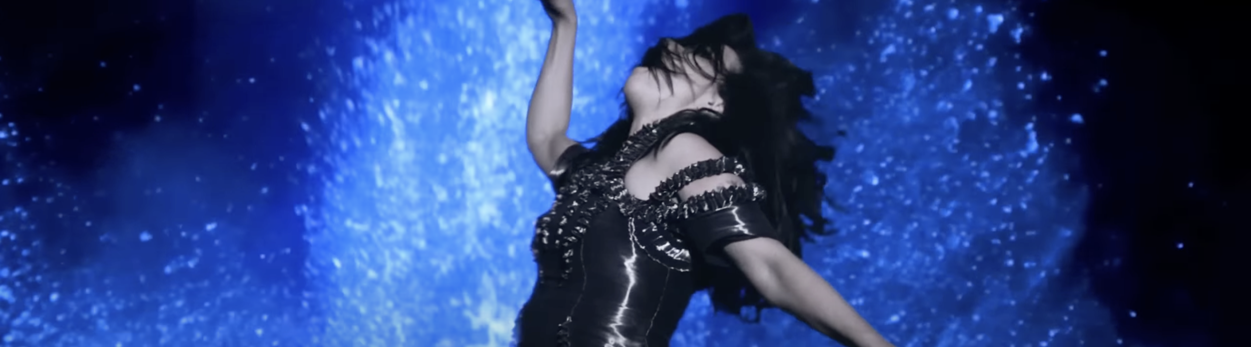 The video starts with Björk in a the middle of a cave. Due to the wide aspect ratio of the video (approx. 67:18 ratio), the audience is able to see both Björk and her surroundings. This video (and song) is about Björk navigating the grief following her breakup from her husband of 13 years. The shot is a wide shot of her kneeling down in the cave. The fact that the opening shot immediately tells the audience that she is feeling isolated, she is completely alone in this dark, cold cave. She is on her knees as she is weak from grief. The lighting in the shot is a singular bright white light source coming from outside of the cave, from behind the camera. This light could represent the happiness that Björk is currently not feeling. The film then fades to a slightly closer wide shot in the same location, except this shot is now from a higher angle, looking down at her. The lighting is still the same, but we can now more clearly see her shadow behind her. This shot would have been filmed at a high frame rate and then slowed down, as the movement as she thrusts her head around is very smooth. The weight of her grief is emphasised and the sense of stillness is enhanced by the use of long, sustained shots.